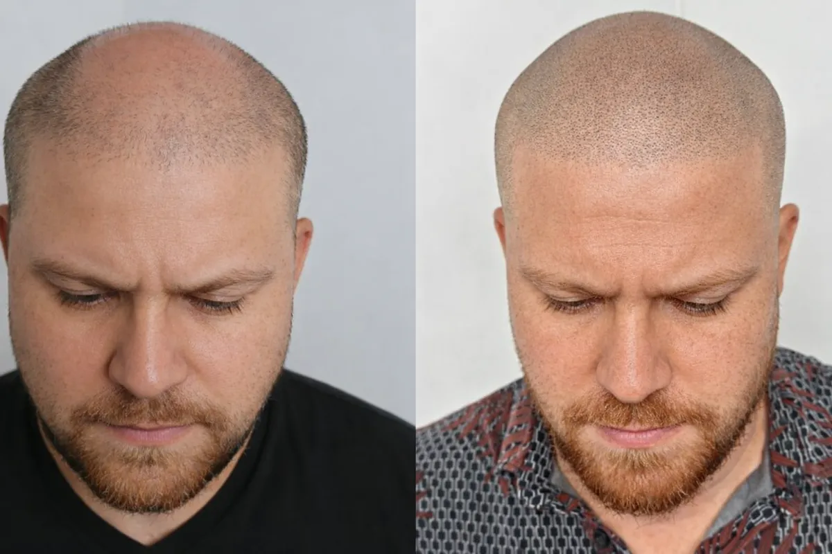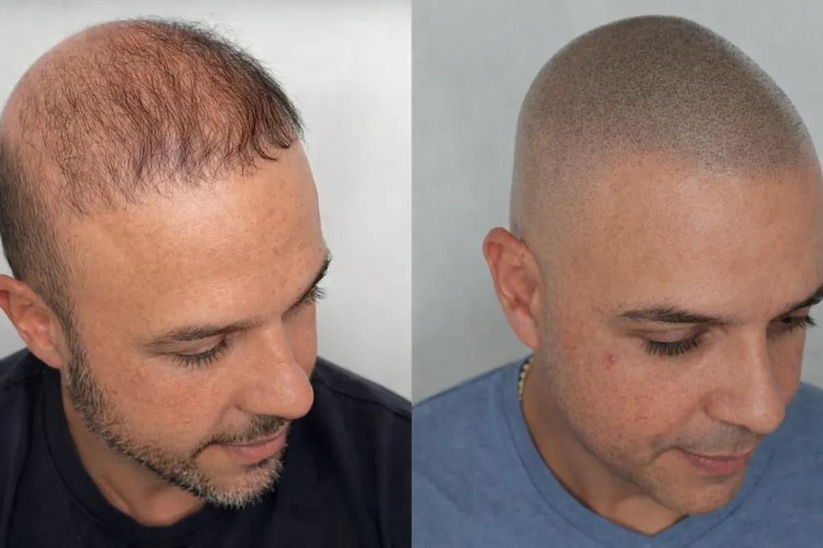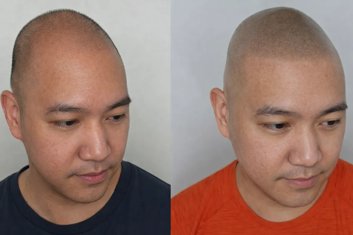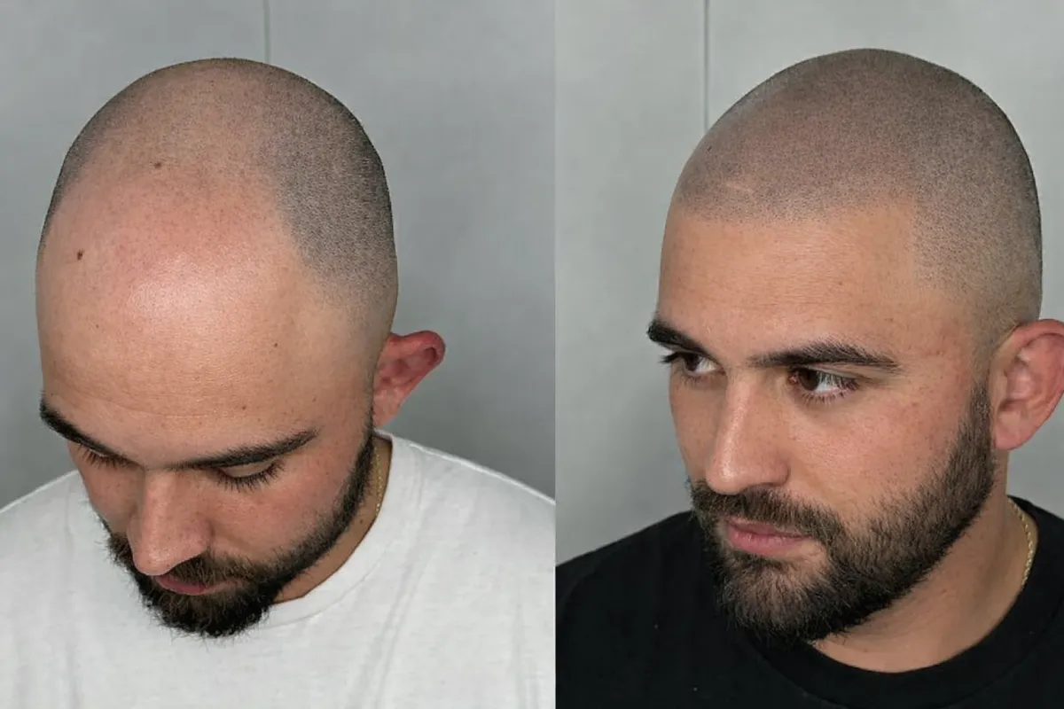 Simulación realista del antes y después, basada en tus propias fotos, para que visualices cómo lucirías con Micropigmentación Capilar antes de iniciar el tratamiento.